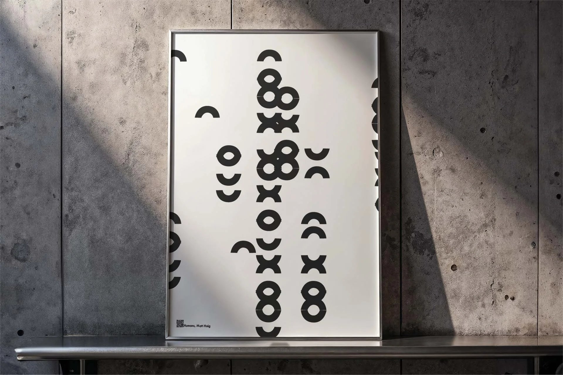 Im Rahmen des Kurses Kommunikationsdesign 2 an der ecosign/Akademie für Gestaltung habe ich eine Hommage an das Buch „Humans“ von Matt Haig gestaltet. Darin erlebt ein Außerirdischer zum ersten Mal das Leben in einem menschlichen Körper und reflektiert unsere gesellschaftlichen Normen, Emotionen und Denkweisen aus einer distanzierten Perspektive. Dieses anfängliche Gefühl von Verwirrung und Unverständnis habe ich visuell aufgegriffen: Rätselhafte Zeichen auf den Plakaten werden über einen QR-Code entschlüsselt und machen so den Prozess des Verstehens erlebbar. Das Projekt entstand im Wintersemester 2022 unter der Leitung von Fabian Knöbel.